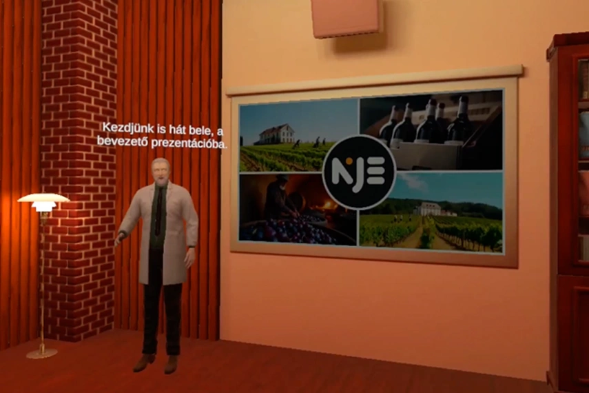 Hogyan lehet egy borászati üzemet bemutatni a hallgatóknak anélkül, hogy elhagynák az egyetemet? Az NJE Winery Tour VR fejlesztés erre ad választ: a Neumann János Egyetem számára készült interaktív alkalmazás a szőlőtől a palackozásig végigvezeti a hallgatókat a borkészítés folyamatán, miközben élményszerű, mérhető és bárhonnan elérhető tanulási környezetet biztosít.