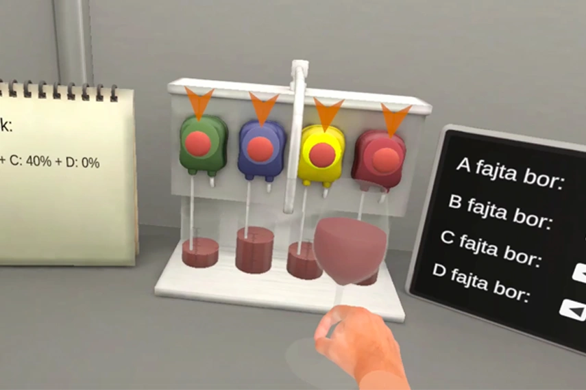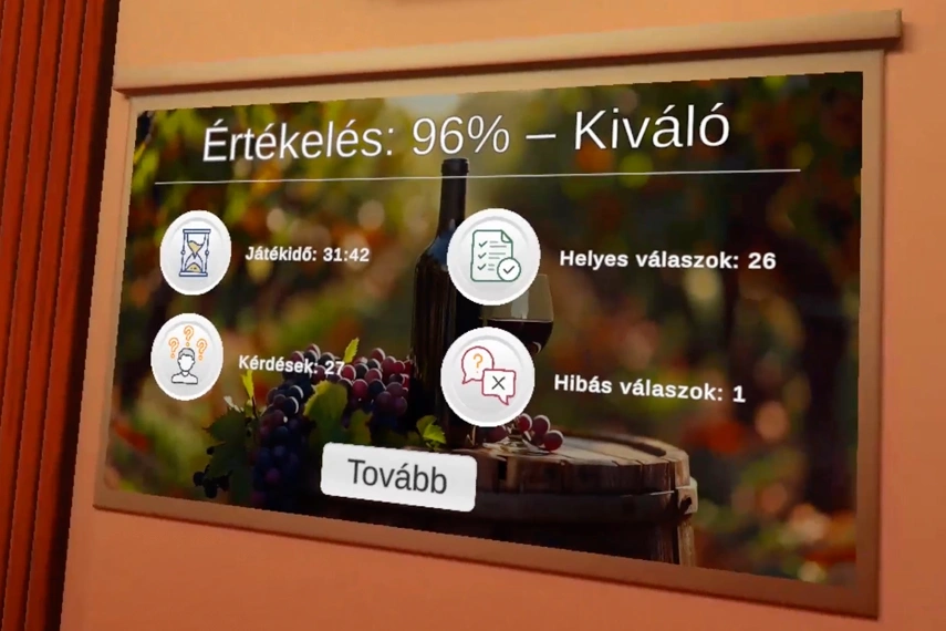 A Neumann János Egyetem új közgazdasági szakjának fontos része, hogy a hallgatók közel tíz üzemlátogatáson vegyenek részt, különböző iparágakba betekintést nyerve. A hagyományos látogatások azonban rengeteg szervezést, utazást és költséget igényelnek, ráadásul a részvétel sem mindig megoldható a hallgatók számára. A borászat ezen felül különösen érzékeny terület: hazánkban nincs nagyüzemi borkészítés, így a folyamatok bemutatása nehezen kivitelezhető. Erre kínál innovatív megoldást egy standalone VR fejlesztés, amely valósághűen és interaktívan képes bemutatni a teljes borkészítési folyamatot.